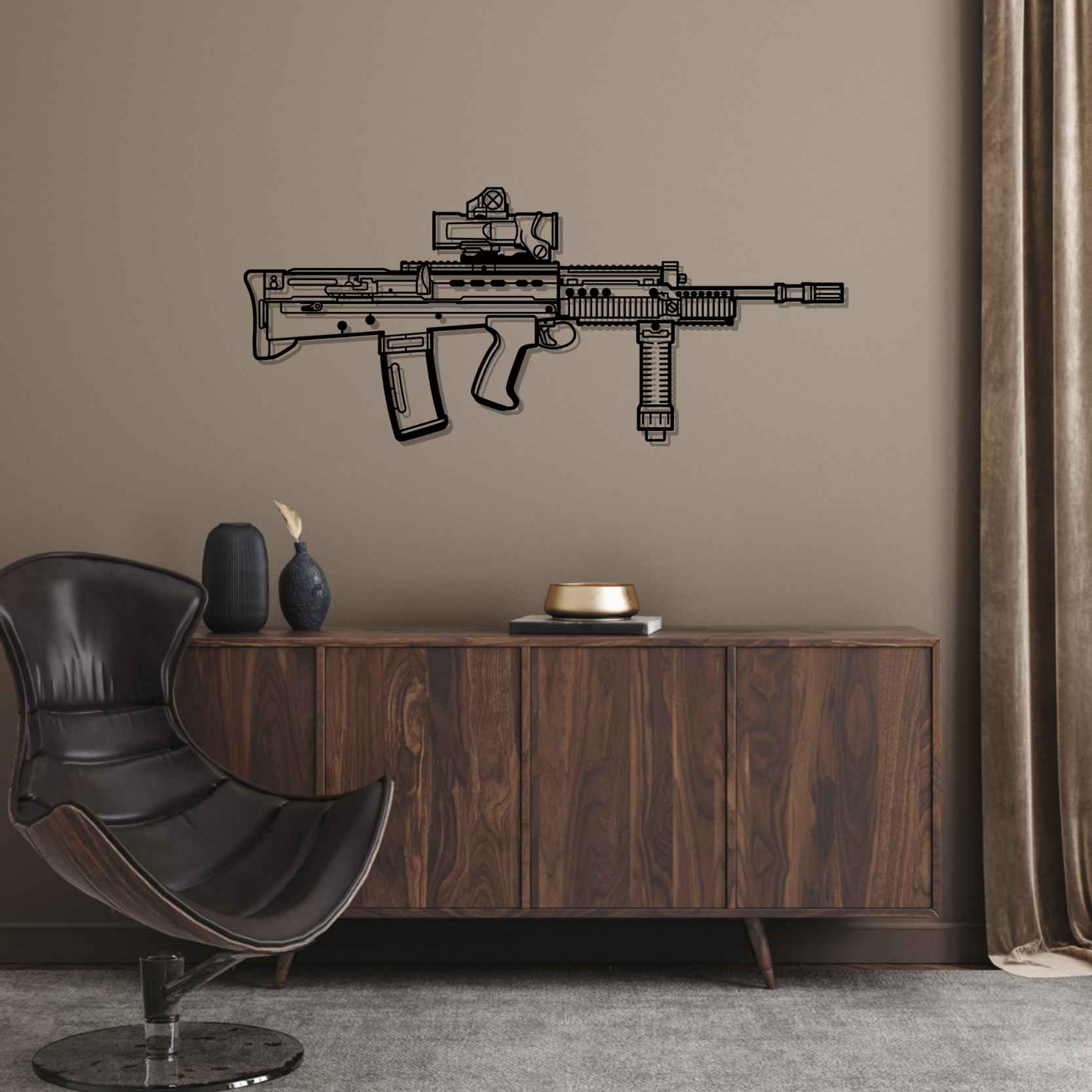 "The AK47 wall art I got for my man cave is pure fire. The details are insane."